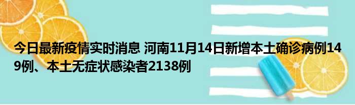 今日最新疫情实时消息 河南11月14日新增本土确诊病例149例、本土无症状感染者2138例