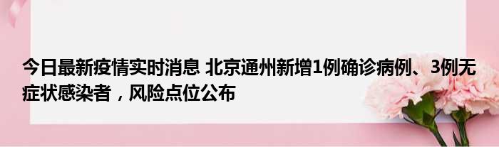 今日最新疫情实时消息 北京通州新增1例确诊病例、3例无症状感染者,风险点位公布