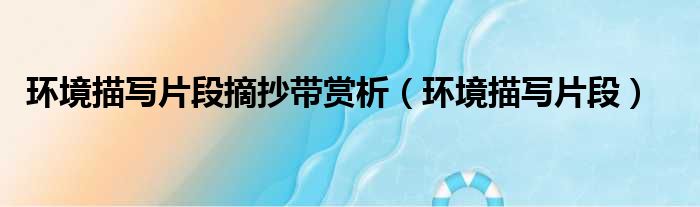 大家好,今天小六子来为大家解答以下的问题,关于环境描写片段摘抄带赏析,环境描写片段这个很多人还不知道,现在让我们一起来看看吧!