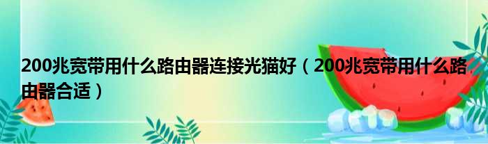 200兆宽带用什么路由器连接光猫好(200兆宽带用什么路由器合适)