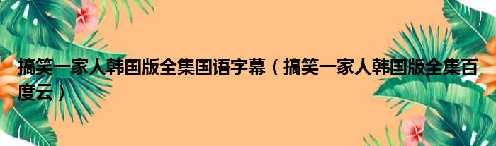 搞笑一家人韩国版全集国语字幕(搞笑一家人韩国版全集百度云)