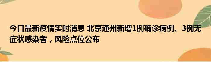 今日最新疫情实时消息 北京通州新增1例确诊病例、3例无症状感染者,风险点位公布