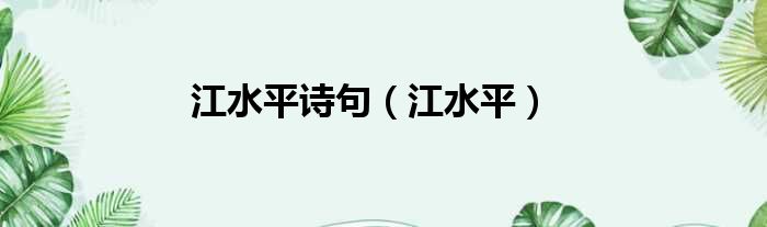 大家好,今天小六子来为大家解答以下的问题,关于江水平诗句,江水平这个很多人还不知道,现在让我们一起来看看吧!