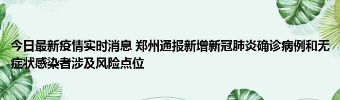 您的位置:首页 >房产频道 > 综合精选 > 今日最新疫情实时消息 郑州通报新增新冠肺炎确诊病例和无症状感染者涉及风险点位 2022-12-03 23:32:14 • 来源: 导读 免责声明:本文由用户上传,如有侵权请联系删除! 上一篇:布病检测方法视频教程(布病检测方法) 下一篇:合和二仙是谁(合和二仙)