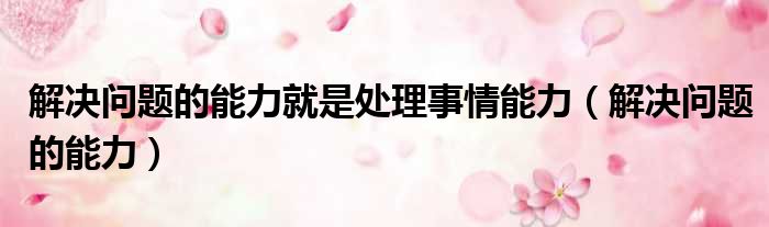 解决问题的能力就是处理事情能力(解决问题的能力)