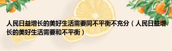 人民日益增长的美好生活需要同不平衡不充分(人民日益增长的美好生活需要和不平衡)
