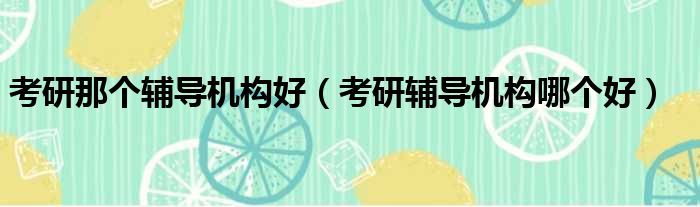 考研那个辅导机构好(考研辅导机构哪个好)