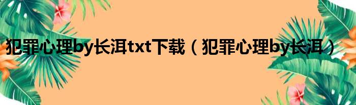 导读 大家好,今天小六子来为大家解答以下的问题,关于犯罪心理by长洱txt下载,犯罪心理by长洱这个很多人还不知道,现在让我们一起来看看吧!1、