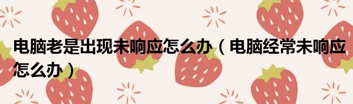 电脑老是出现未响应怎么办(电脑经常未响应怎么办)