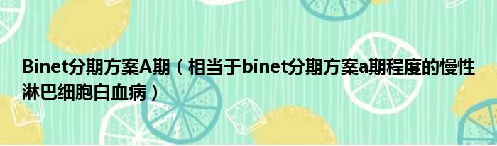 导读 大家好,今天小六子来为大家解答以下的问题,关于Binet分期方案A期,相当于binet分期方案a期程度的慢性淋巴细胞白血病这个很多人还不知道,