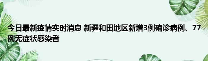 今日最新疫情实时消息 新疆和田地区新增3例确诊病例、77例无症状感染者