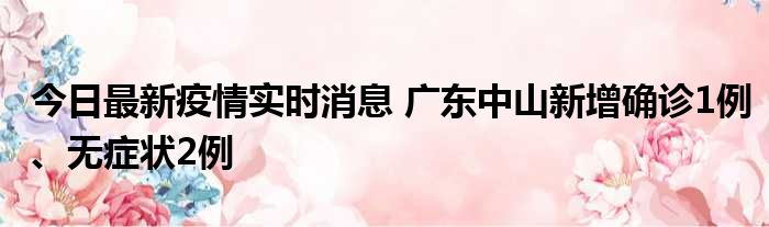 今日最新疫情实时消息 广东中山新增确诊1例、无症状2例