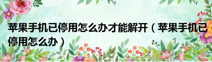 苹果手机已停用怎么办才能解开(苹果手机已停用怎么办)