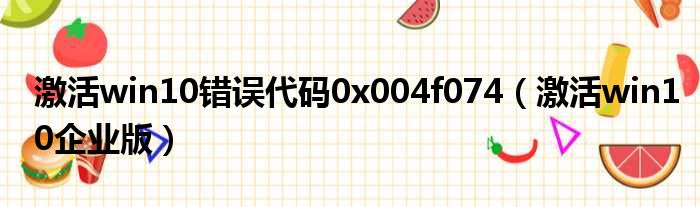 激活win10错误代码0x004f074(激活win10企业版)