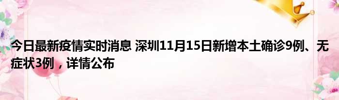 今日最新疫情实时消息 深圳11月15日新增本土确诊9例、无症状3例,详情公布