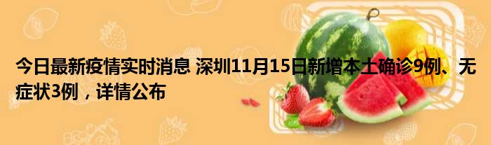 深圳卫健委通报,11月15日0-24时,深圳新增9例新冠肺炎确诊病例和3例新冠病毒无症状感染者