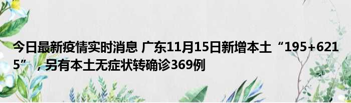 今日最新疫情实时消息 广东11月15日新增本土“195+6215”,另有本土无症状转确诊369例
