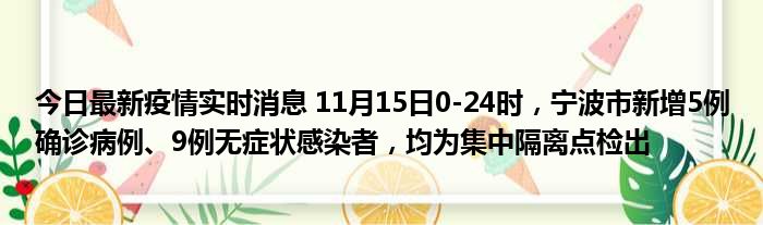 您的位置:首页 >房产频道 > 综合精选 > 今日最新疫情实时消息 11月15日0-24时,宁波市新增5例确诊病例、9例无症状感染者,均为集中隔离点检出 2022-12-04 14:56:21 • 来源: 导读 免责声明:本文由用户上传,如有侵权请联系删除! 上一篇:问世间情是何物原词(问世间情是何物原词写的是) 下一篇:虱子去除最快方法(虱子)