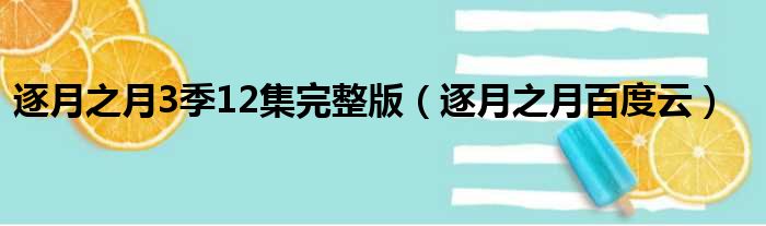 导读 大家好,今天小六子来为大家解答以下的问题,关于逐月之月3季12集完整版,逐月之月百度云这个很多人还不知道,现在让我们一起来看看吧!1、