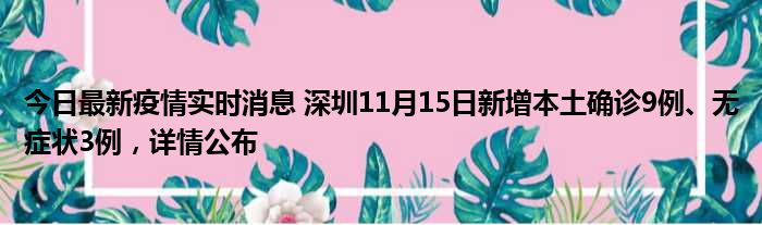 今日最新疫情实时消息 深圳11月15日新增本土确诊9例、无症状3例,详情公布