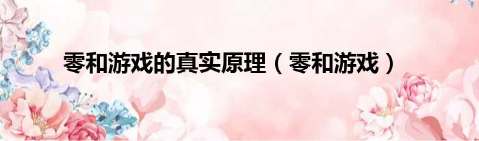导读 大家好,今天小六子来为大家解答以下的问题,关于零和游戏的真实原理,零和游戏这个很多人还不知道,现在让我们一起来看看吧!1、零和游戏,
