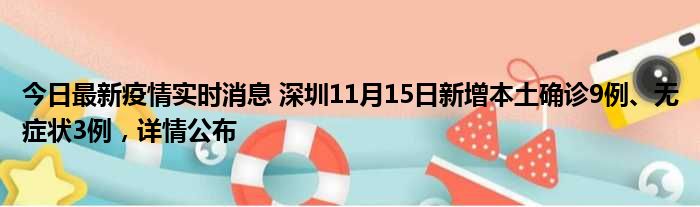 今日最新疫情实时消息 深圳11月15日新增本土确诊9例、无症状3例,详情公布