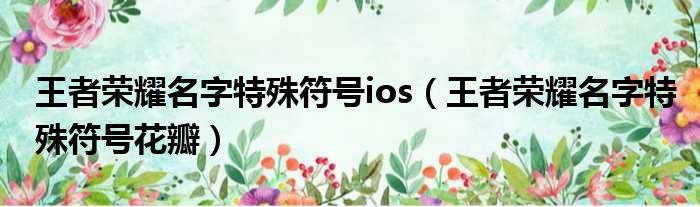 王者荣耀名字特殊符号ios(王者荣耀名字特殊符号花瓣)