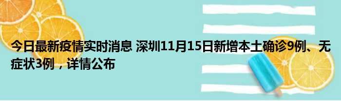 深圳卫健委通报,11月15日0-24时,深圳新增9例新冠肺炎确诊病例和3例新冠病毒无症状感染者
