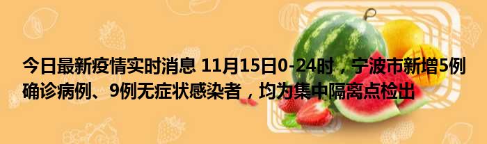 您的位置:首页 >房产频道 > 综合精选 > 今日最新疫情实时消息 11月15日0-24时,宁波市新增5例确诊病例、9例无症状感染者,均为集中隔离点检出 2022-12-04 18:24:15 • 来源: 导读 免责声明:本文由用户上传,如有侵权请联系删除! 上一篇:中金国际集团是真是假(中金国际集团) 下一篇:运动会的具体描写(运动会的具体流程)