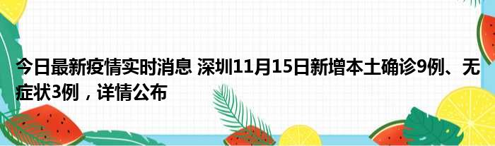 深圳卫健委通报,11月15日0-24时,深圳新增9例新冠肺炎确诊病例和3例新冠病毒无症状感染者
