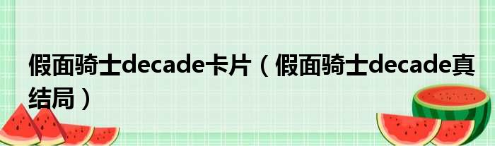 导读 大家好,今天小六子来为大家解答以下的问题,关于假面骑士decade卡片,假面骑士decade真结局这个很多人还不知道,现在让我们一起来看看吧!1
