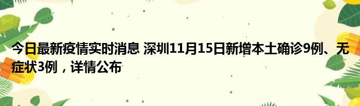 今日最新疫情实时消息 深圳11月15日新增本土确诊9例、无症状3例,详情公布
