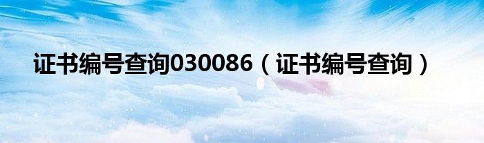 大家好,今天小六子来为大家解答以下的问题,关于证书编号查询030086,证书编号查询这个很多人还不知道,现在让我们一起来看看吧!
