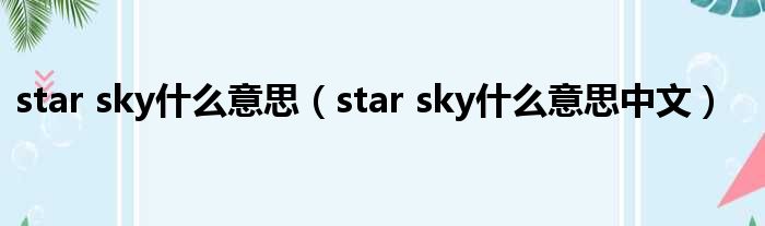 导读 大家好,今天小六子来为大家解答以下的问题,关于star sky什么意思,star sky什么意思中文这个很多人还不知道,现在让我们一起来看看吧!1