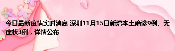 深圳卫健委通报,11月15日0-24时,深圳新增9例新冠肺炎确诊病例和3例新冠病毒无症状感染者