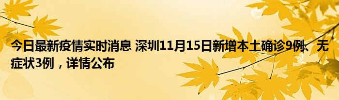 深圳卫健委通报,11月15日0-24时,深圳新增9例新冠肺炎确诊病例和3例新冠病毒无症状感染者