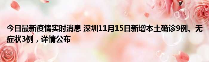 今日最新疫情实时消息 深圳11月15日新增本土确诊9例、无症状3例,详情公布