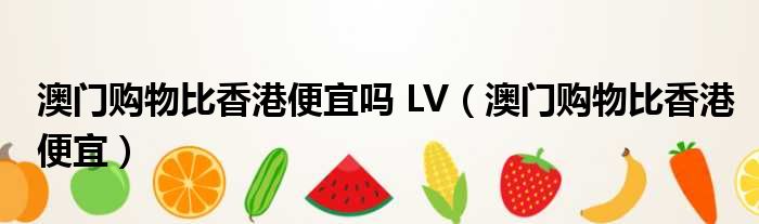 澳门购物比香港便宜吗 LV(澳门购物比香港便宜)