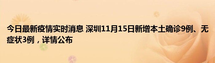 今日最新疫情实时消息 深圳11月15日新增本土确诊9例、无症状3例,详情公布