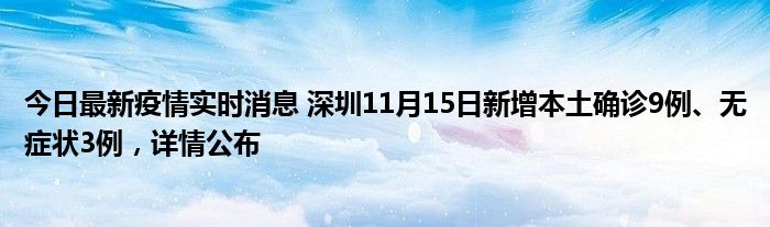 今日最新疫情实时消息 深圳11月15日新增本土确诊9例、无症状3例,详情公布