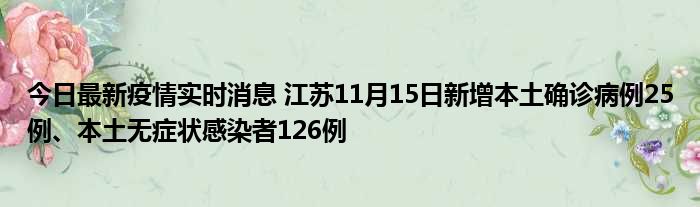 今日最新疫情实时消息 江苏11月15日新增本土确诊病例25例、本土无症状感染者126例