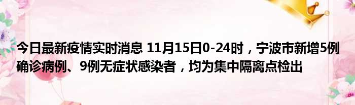 您的位置:首页 >房产频道 > 综合精选 > 今日最新疫情实时消息 11月15日0-24时,宁波市新增5例确诊病例、9例无症状感染者,均为集中隔离点检出 2022-12-05 01:24:15 • 来源: 导读 免责声明:本文由用户上传,如有侵权请联系删除! 上一篇:微众银行账户管制通知(微众银行) 下一篇:京东商城手机特价专卖(京东商城手机)