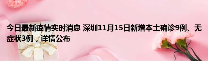 深圳卫健委通报,11月15日0-24时,深圳新增9例新冠肺炎确诊病例和3例新冠病毒无症状感染者