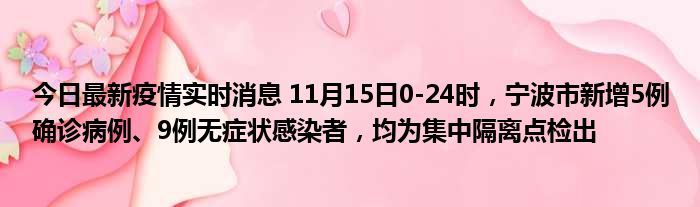 您的位置:首页 >房产频道 > 综合精选 > 今日最新疫情实时消息 11月15日0-24时,宁波市新增5例确诊病例、9例无症状感染者,均为集中隔离点检出 2022-12-05 02:44:14 • 来源: 导读 免责声明:本文由用户上传,如有侵权请联系删除! 上一篇:天王卡联通(天王卡) 下一篇:逢雪宿芙蓉山主人古诗带拼音解释(逢雪宿芙蓉山主人古诗带拼音)
