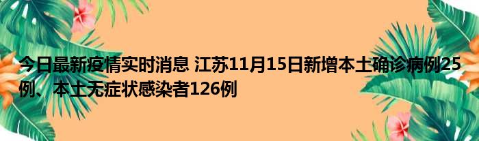 今日最新疫情实时消息 江苏11月15日新增本土确诊病例25例、本土无症状感染者126例