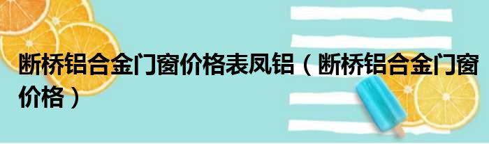 断桥铝合金门窗价格表凤铝(断桥铝合金门窗价格)