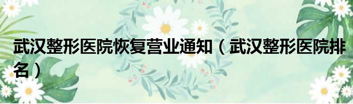 武汉整形医院恢复营业通知(武汉整形医院排名)