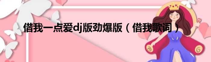 大家好,今天小六子来为大家解答以下的问题,关于借我一点爱dj版劲爆版,借我歌词这个很多人还不知道,现在让我们一起来看看吧!