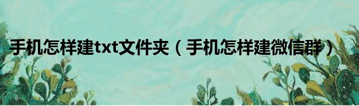 导读 大家好,今天小六子来为大家解答以下的问题,关于手机怎样建txt文件夹,手机怎样建微信群这个很多人还不知道,现在让我们一起来看看吧!1、