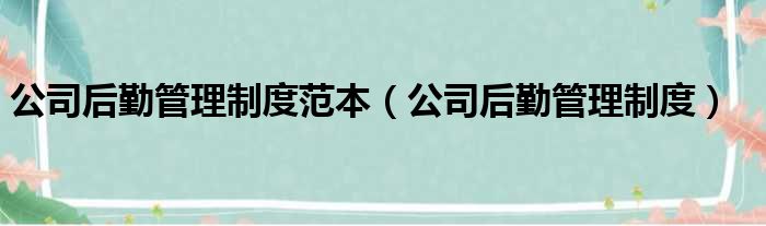 大家好,今天小六子来为大家解答以下的问题,关于公司后勤管理制度范本,公司后勤管理制度这个很多人还不知道,现在让我们一起来看看吧!